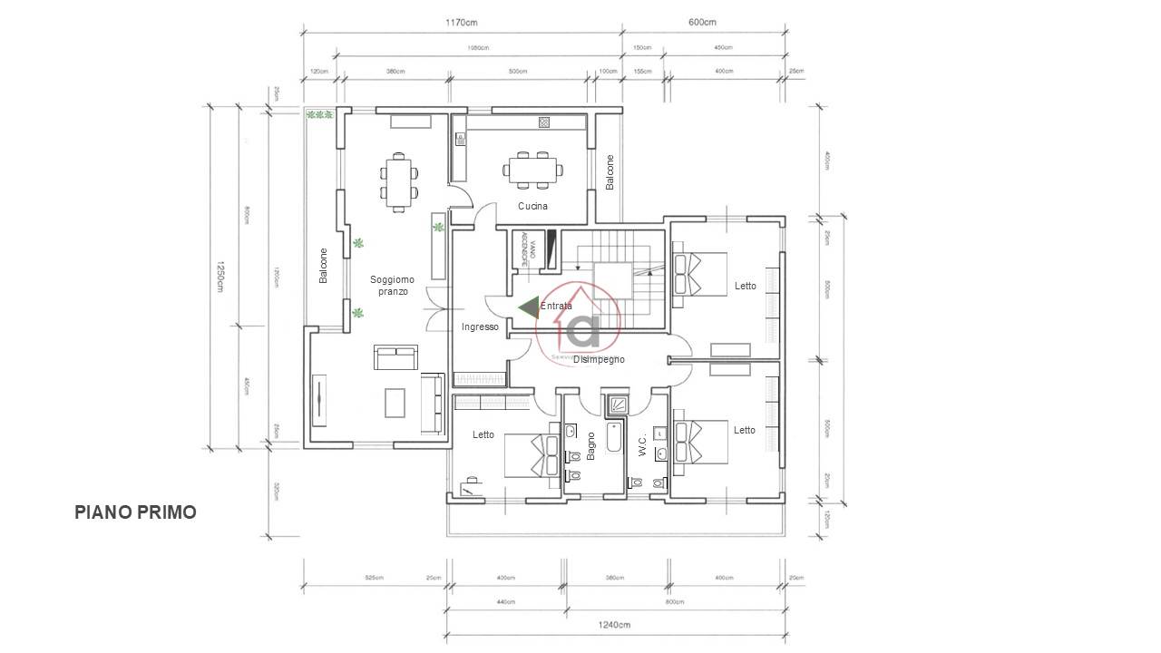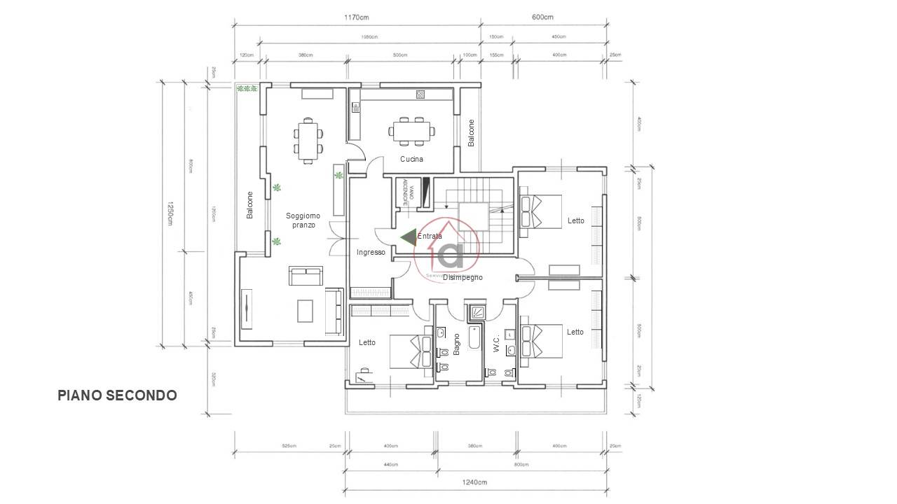 - cucina abitabile di 20 mq con secondo balcone