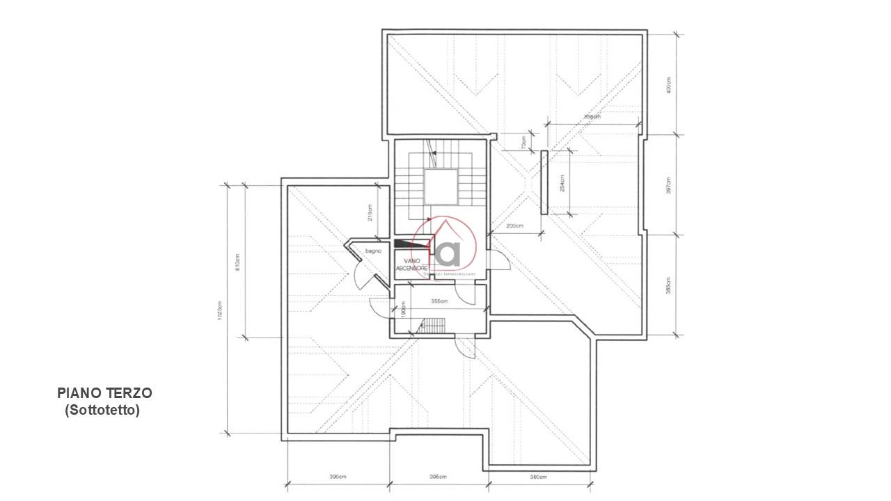 Al terzo piano servito da ascensore troviamo abbinata ad ogni appartamento una soffitta abitabile di oltre 70 metri finestrata con un'altezza media di 1,90 h.