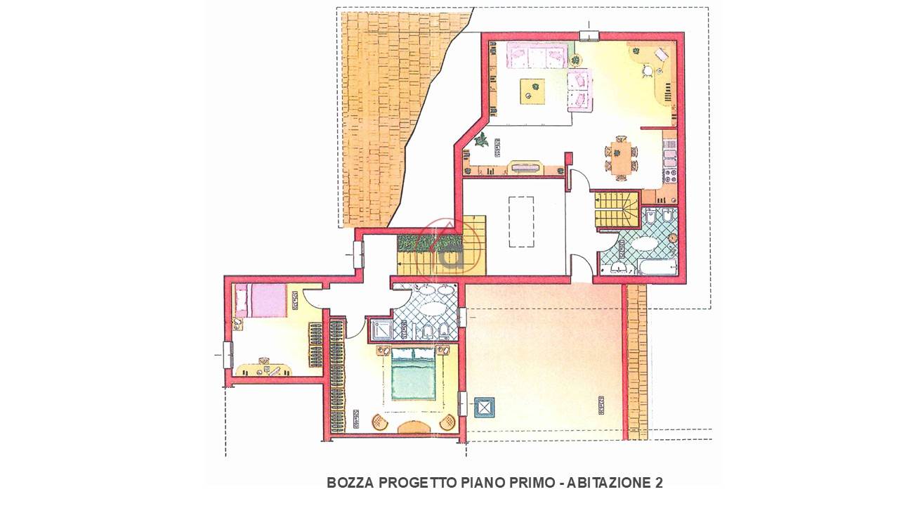 La secondo abitazione è contornata dal proprio giardino ed è attualmente allo stato grezzo in quanto la struttura esterna è stata edificata in epoca recente ma non è stata ultimata. La distribuzione degli spazi interni può essere personalizzata in base alle proprie esigenze e la progettazione attuale prevede ambienti dall'essenza moderna e caratterizzati dalle travi in legno e dai doppi volumi. Completano la proprietà l'autorimessa doppia e un ricovero attrezzi di oltre 60 mq.
